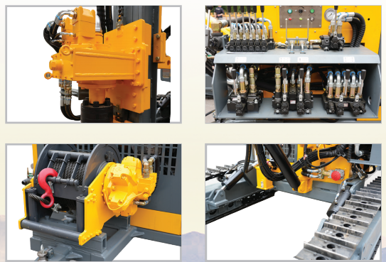 • The folding frame track and four-wheel drive are adopted and track leveling and the enhanced piston walking motor to increase working pressure and climbing capacity.